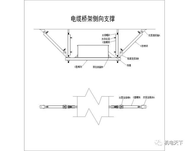 为防止地震时电力系统失效、短路及起火造成人员伤亡及财产损失,根据《建筑抗震设计规范》(GB50011-2010)第1.0.2条、第3.7.1条及《建筑机电工程抗震设计规范》(GB50981-2014)1.0.4及7.4.6条为强制性条文,应对机电管线系统进行抗震加固。本项目重力超过1.8kN的设备;内径大于等于DN60mm的电气配管;15Kg/m或以上的电缆桥架、电缆梯架、电缆线盒、母线槽都应设置抗震支吊架,且此项目抗震支吊架产品需通过FM认证,与混凝土、钢结构、木结构等须采取可靠的锚固形式。抗震支吊架的设置原则为:刚性电力线管侧向支撑最大间距为12m,非刚性电力线管侧向支撑最大间距为6m,刚性电力线管纵向支撑最大间距为24m,非刚性电力线管纵向支撑最大间距为12m。(为保证抗震系统的整体安全性,对长度低于300mm的吊杆,也建议进行适当的补强)。具体深化设计由专业公司完成,最终间距根据现场实际情况在深化设计阶段确定。所有产品需满足《建筑机电设备抗震支吊架通用技术条件》CJ/T476-2015。