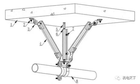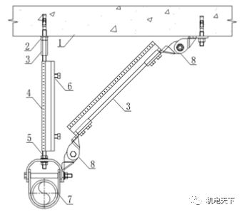 5-长螺杆;6-加劲装置;7-管道;8-抗震连接构件