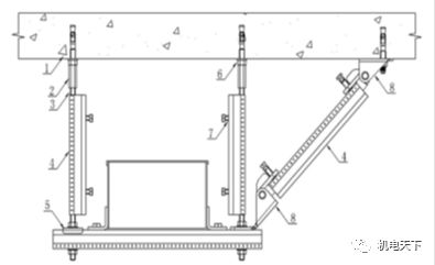 5-长螺杆;6-抗震锚栓;7-加劲装置;8-抗震连接构件