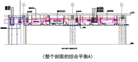 (7)进行机电管线调整定位,确定剖面设计 在初步机电管线剖面布置图的基础上进行综合布置的调整定位,各机电系统管线布置总体统筹顺序为: