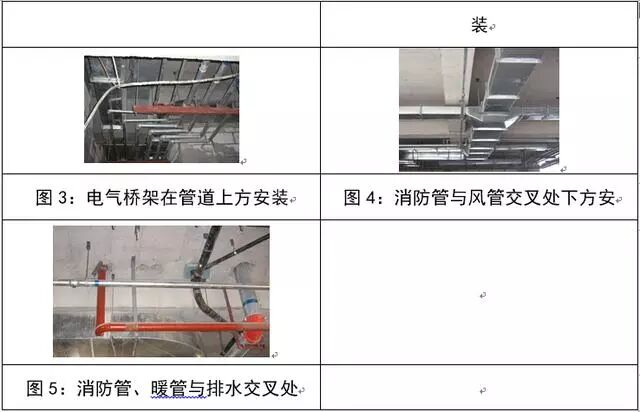 注:由于消防、水暖及排水管线布置不合理、不紧凑,从而造成吊顶上部空间的浪费,给管线装修,特别给是吊顶造型带来困难;如上图5:消防管、暖管与排水交叉处,管线布置失败,最后重新拆除二次安装,既浪费成本,又浪费工期,因此安装工程中一定要重视其它管线与排水管线交叉处管线的综合布置。