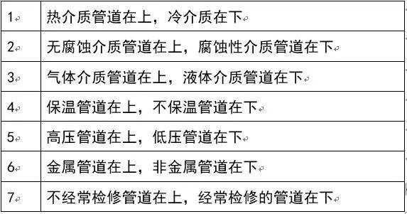 注:上述为管线布置基本原则,管线综合协调过程中根据实际情况综合布置,管间距离以便于安装、检修为原则。