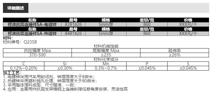 名称:标准抗震连接件