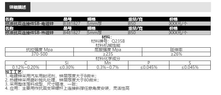 名称:标准抗震连接件