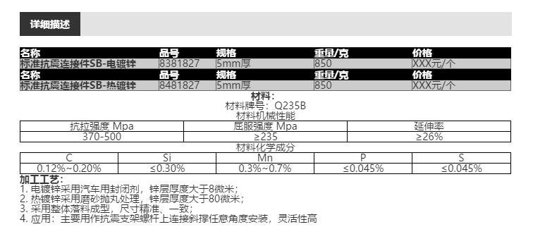 名称:标准抗震连接件